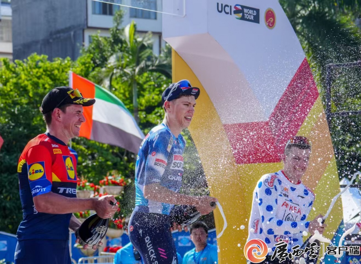 在本届环广西夺得三连胜的保罗·马尼耶赛后非常开心,他说道:“对我来说要争取最终的总冠军确实太难了,但我已经取得了三连胜,能够连续三天穿上红色领骑衫,我已经非常享受了。”此外,他还分享了一个有趣的花絮:“我们在广西每天都会扫码骑共享电瓶车出门,因为我们车手都安装了支付宝,非常方便。我觉得骑共享电瓶车比自行车比赛轻松多了。”