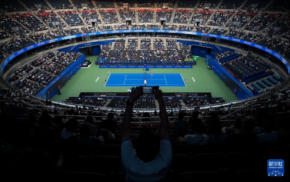 这是10月12日拍摄的女双决赛现场。