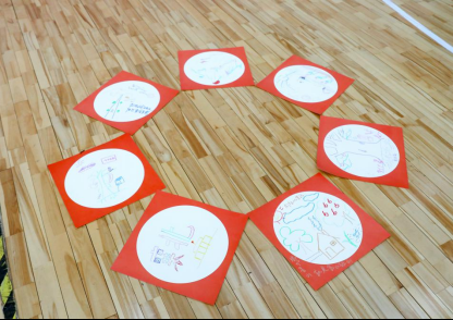 各小组还共绘《心中的风景画》,并合力设计团队雕塑。围绕“青山绿水”“襄北精神”“和谐家园”等主题,大家群策群力,用身体搭建出富有寓意的造型,展示并解读画作内涵。小组共建不仅开启了协作之旅,更在彼此照见中实现赋能续航,将整场活动推向高潮。